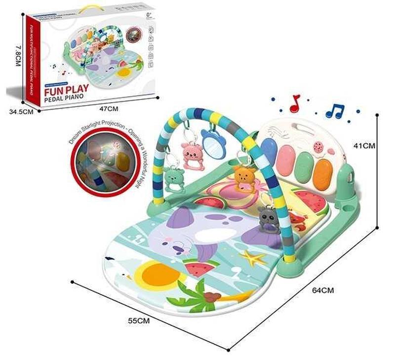 Интерактивный коврик-пианино для малышей Подарите вашему ребенку яркие эмоции и безграничные возможности для развития с нашим чудесным интерактивным ковриком-пианино! Этот коврик станет идеальным местом для игр и обучения. - Размеры: 64 см x 55 см, высота 41 см. - Материал: безопасный для детей, легко чистится. - Функции: погремушки, зеркальце, подсветка и мелодии. - Проекция: яркие изображения для развлечения и обучения. - Упаковка: поставляется в удобной коробке, идеально подходит для подарка. Этот коврик не только развеселит, но и поможет в развитии моторики и слухового восприятия у вашего ребенка!