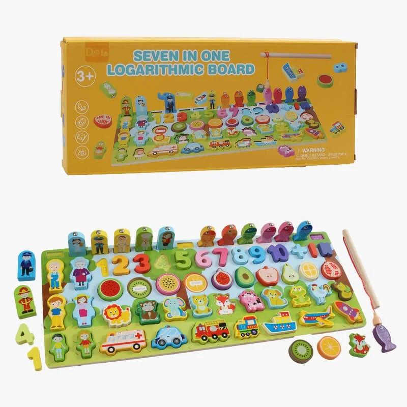 Развивающая деревянная логическая доска для детей Яркая и многофункциональная доска поможет ребёнку развивать память, логику, речь и мелкую моторику через увлекательную игру. Изготовлена из натурального дерева, что делает её приятной на ощупь и безопасной для малышей. - Размер доски: 45х18 см - Цифры для изучения основ счёта - Магнитная рыбалка с удочкой - Фигурки животных, фруктов, транспорта и людей разных профессий - Сортировщики по формам для удобной сортировки предметов - Надписи на английском языке для изучения иностранной лексики Игра с этой доской поможет ребёнку весело и эффективно познавать мир, развивать логическое мышление и координацию движений. Отлично подходит для домашних занятий и детских садов.