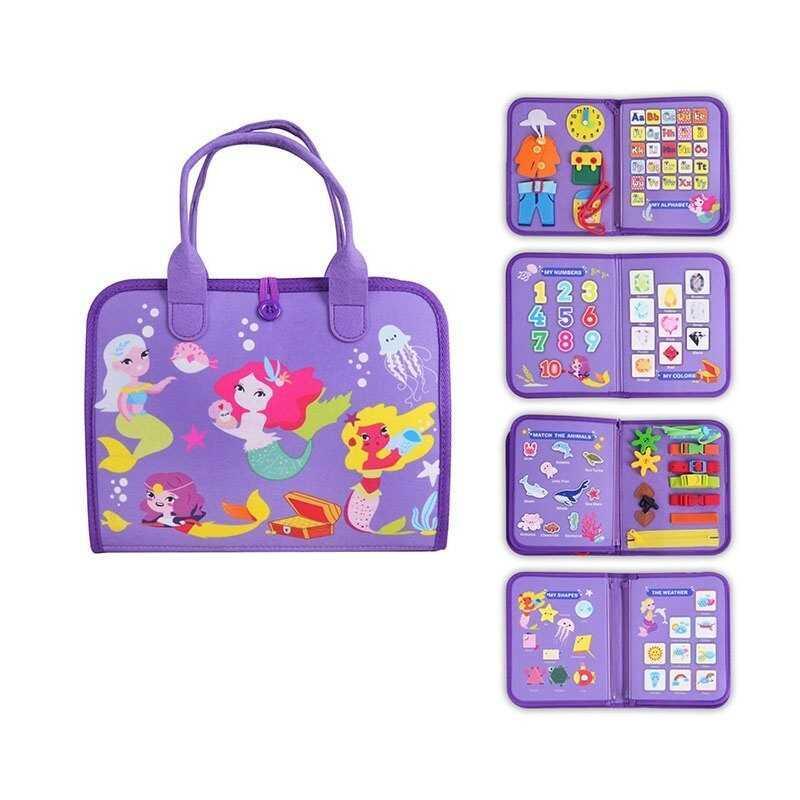 Интерактивная развивающая папка для детей Эта логическая папка 25024 изготовлена из мягкого фетра и оснащена разнообразными обучающими элементами: цифрами, английским алфавитом, геометрическими фигурами, природными явлениями, морскими обитателями, ремешками и подвижными шестерёнками. Она помогает ребёнку развивать логику, мелкую моторику и базовые знания в игровой форме. - Материал: мягкий фетр - Развивает логическое мышление и навыки - Включает обучающие элементы по английскому и математике - Оснащена подвижными деталями для интерактивности - Удобная форма в виде компактной папки с ремешками