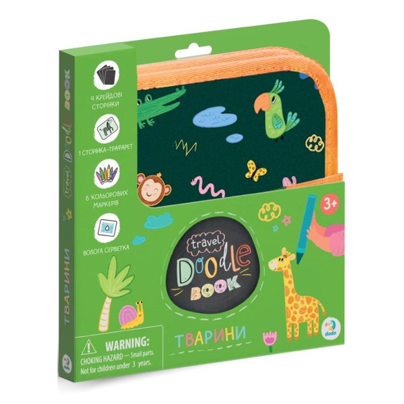 Дорожній набір для малювання Dodo Тварини 301047 -- творчий супутник дитини в дорозі Дорожній набір для малювання Dodo Тварини 301047 -- це незамінна річ у подорожах з дитиною. Спеціально створена для активного розвитку малюків, ця книжка легко вміщується у сумку або рюкзак, а її компактний формат і зручна папка дозволяють зберігати всі елементи в одному місці. Ідеально підходить як для мандрівок, так і для відпочинку на природі, вдома чи в гостях. Що входить до набору - Папка для зберігання: 20,5 × 1,6 × 19,5 см - 4 крейдові сторінки - 1 трафаретна сторінка для творчих завдань - 1 прозора сторінка для малювання за зразком - 6 перезаписуваних маркерів «пиши-витирай» - 1 волога серветка для легкого очищення Книжка розроблена з використанням безпечних матеріалів та нетоксичних інструментів, що робить її придатною для дітей віком від 3 років. Розвиток творчих навичок та емоційного інтелекту Цей малювальний набір сприяє розвитку художнього мислення, дрібної моторики та уяви. Яскраві кольори та можливість створювати зображення крейдою мотивують дітей виражати свої емоції через творчість. За допомогою маркерів та спеціальної сторінки, де можна витирати створене, дитина зможе експериментувати без обмежень. Чому варто обрати саме цей дорожній набір - Зручний у користуванні й транспортуванні - Виготовлений з якісних і безпечних матеріалів - Розвиває творче та емоційне мислення - Підходить для далеких подорожей або швидкого дозвілля Обирайте Dodo Тварини 301047 та подаруйте дитині нові враження через малювання у будь-який час і в будь-якому місці.