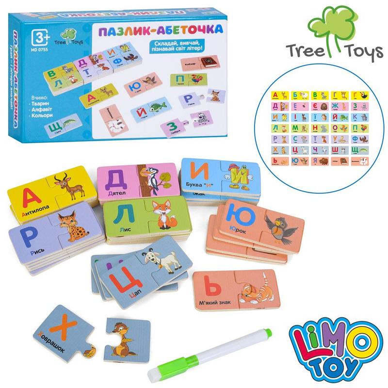 2604 Деревянная игрушка Пазлик-абеточка. Эта логическая игрушка познакомит ребенка с азбукой, цветами, животными. Кроме того, ребенку нужно будет найти для каждой половинки свою пару Характеристики: Тип: пазли половинки Материал: дерево Возраст: от 2 лет Размер упаковки: 21,5-13-4см Упаковка: коробка Цвет: разные цвета