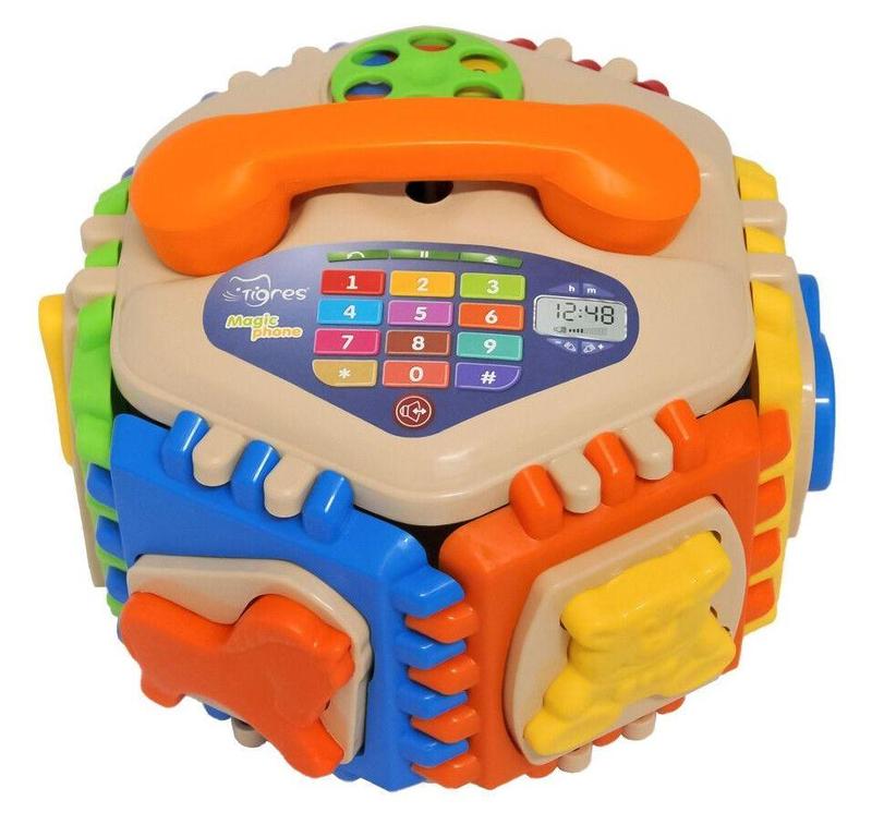 Іграшка-сортер "Magic phone" 27 ел., Tigres - це яскрава, захоплююча і дуже корисна для вашої дитини іграшка, яка поєднує функції конструктора і Портера. Сортер - це той вид розваг, який зможе одночасно розвивати та розважати вашого малюка. Іграшка складається з 6 бокових сторін з фігурами різної форми, в які вставляються фігурки тварин і стінки з отворами різної форми для 6 геометричних фігур, телефонна трубка + циферблат. Щоб скласти шестигранник, дитині потрібно з'єднати її стінки, які є шістьма різнокольоровими елементами. Крім того, у кожній стінці куба є фігурні отвори, до яких потрібно підібрати фігурки тварини відповідної форми. Підбираючи фігурки під отвори, дитина вивчає форми та кольори, вчиться порівнювати та аналізувати, розвиває пам'ять та логіку. З елементів куба можна складати інші конструкції. Створення конструкцій дуже корисно у розвиток творчого потенціалу дитини. Яскраві кольори допоможуть вашій дитині розвивати візуальні навички, а велика кількість деталей - дрібну моторику рук.