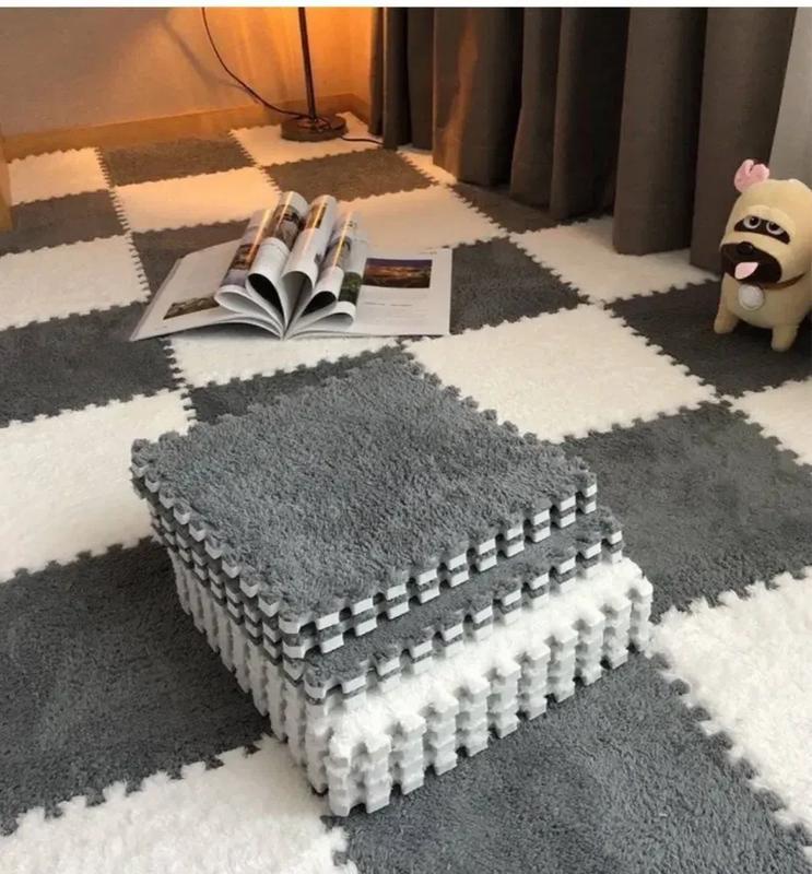 Коврик-пазл c плюшевым покрытием 20 пазлов 30х30х1.5 см бело-серый