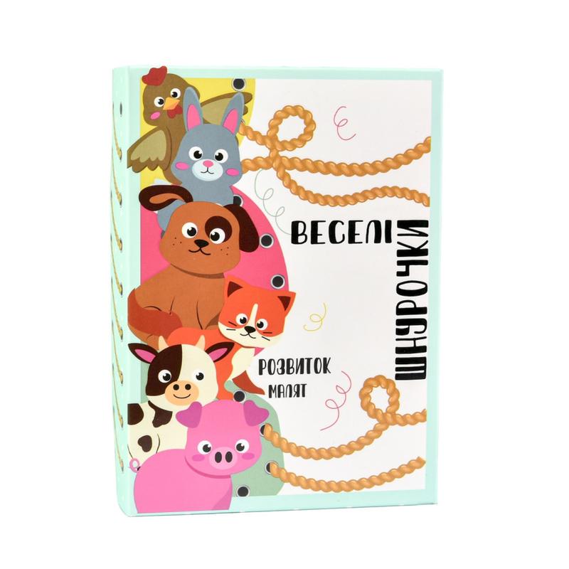 Развивающая игра "веселые шнурочки животные" 30522, 6 картинок, цветные шнурки