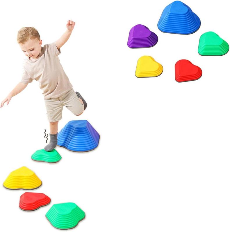 Полезный и яркий набор балансиров для дома, детского сада, площадки, предназначенный для развития координации движений, моторики и баланса у детей. Вес взрослого тоже выдерживает, вы можете присоединиться к игре :) Набор включает 9 камней в форме сердца разных размеров. Они идеально подходят для игровых занятий, развивающих физические навыки и улучшающих баланс. Описание: Набор из 9 камней разных ярких цветов и размеров. Это позволяет создавать различные комбинации для тренировок баланса и координации, а также делает игру привлекательной для детей. Каждый камень имеет текстурированную поверхность, на нижней части противоскользящая резинка для обеспечения безопасности во время игры. Выдерживают нагрузку до 90 кг, что позволяет использовать их как детям, так и взрослым. Камни удобно хранить и переносить - они просто складываются один в один, занимают одну коробку. Преимущества: Развитие баланса: Идеально подходит для тренировки вестибулярного аппарата и развития баланса у детей. Координация движений: Помогает улучшить координацию движений и развить мышечную силу. Развитие логического мышления: Игра с камнями способствует развитию логического мышления, так как дети учатся определять расстояние и планировать свои движения. Многофункциональность: Камни можно использовать как дома, так и в детских садах или центрах раннего развития. Рекомендации по использованию: Используйте камни для создания различных игровых ситуаций, таких как "Река" или "Горячая лава", где детям нужно будет балансировать, перепрыгивать и аккуратно передвигаться с одного камня на другой. Это не только весело, но и полезно для их физического развития. Балансировочные камни - это отличный инструмент для всестороннего физического развития вашего ребенка, способствующий улучшению координации, равновесия и моторики. Яркие цвета, прочная конструкция и удобство хранения делают этот набор идеальным выбором для детей разного возраста.