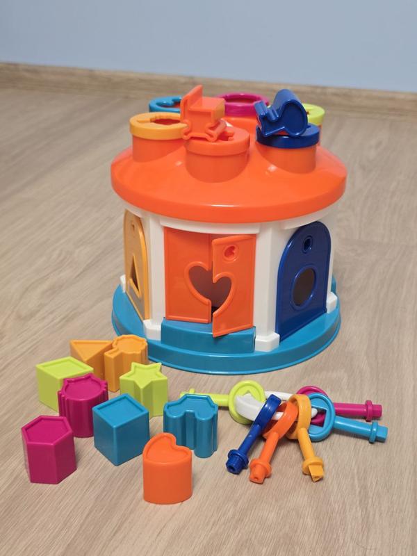 Развивающая игрушка-сортер Battat Умный домик В набор входят 12 фигурок разных форм и цветов, которые нужно правильно подобрать к соответствующим отверстиям. Подбирать разноцветные ключики по форме и цвету, чтобы открыть дверцу, будет интересно, а также полезно для развития мелкой моторики и логики ребенка. Домик удобно брать за ручку и нести туда, куда нужно маленькому исследователю Есть все фигурки, ключи все целое и рабочее. Смотрите другие Мои объявления есть игрушки / книги / одежду