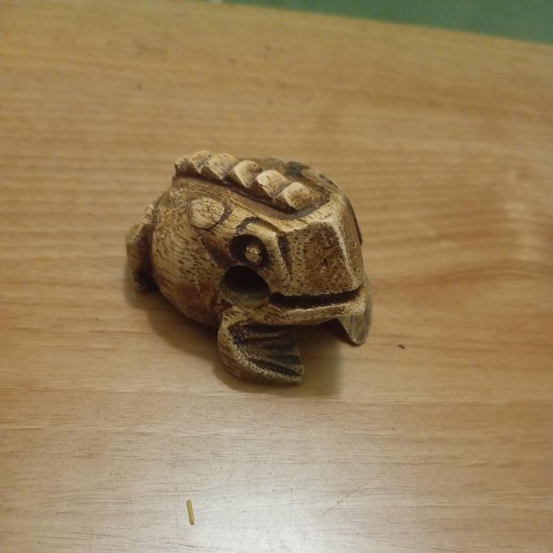 Деревянная лягушка-гуиро — это музыкальный инструмент, который также часто используется как денежный талисман. Изготовлена из дерева (часто из мангового дерева). Звук, похожий на кваканье лягушки, извлекается путем проведения деревянной палочкой по зазубренной спине фигурки. Помимо музыкальной функции, в поверьях считается символом удачи и богатства. Подходит как для детей, так и для взрослых.