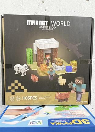Детский магнитный 3д конструктор my world minecraft на 105 деталей конструктор майнкрафт д...
