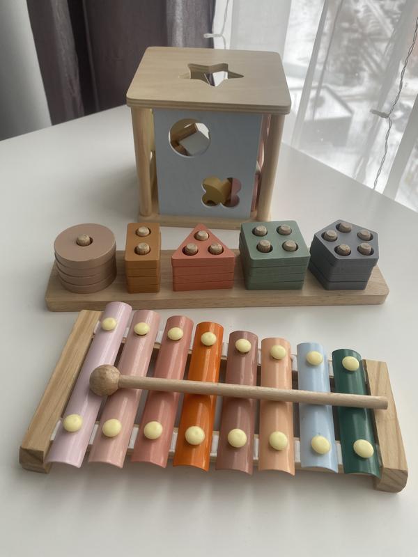 Продам круті розвиваючі іграшки в гарних пастельних кольорах,два деревʼяні сортери та металевий ксилофон Стан іграшок ідеальний Продаю всі три іграшки комплектом Ціна за все 600 грн