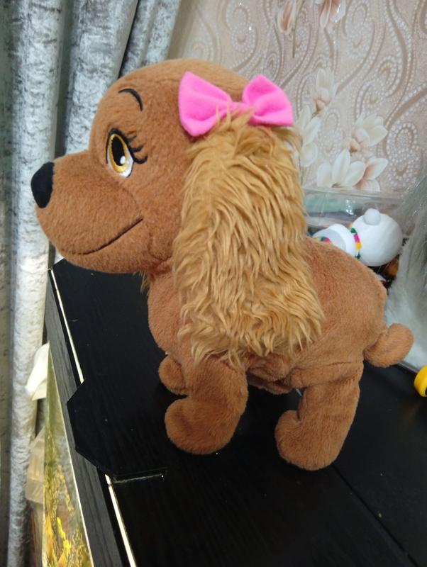 Интерактивная собачка Люси.Тело у нее твердое как у робота, чтобы она могла шевось.Лащится,гавает.Сама садится, сигбае передние лапки когда лащется.Очень прикольная.Працевает от батареек.Стан хорош мжно на подарок.