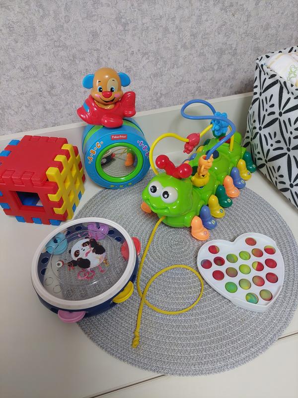 цена за весь лотик! 1. музыкальная каталочка гусеница, есть два режима - пианино или звуки животных, можно катать, нюанс - нет крышки, я зеленивала термопариром от ттн новой или укр почты( все красиво не открывалось( 2. Музыкальная неваляшка Миккилдауэрь, не работает, но красиво играть можно и так как неваляшка, также есть люстерко 3. Красочный конструктор кубик, мягкие грани, легко складывать ручками малышам малышам 4 Поп_Іт 5 музыкальный инструмент бубен-тамбурин все в хорошем состоянии, продезенфицирован, не грязный.