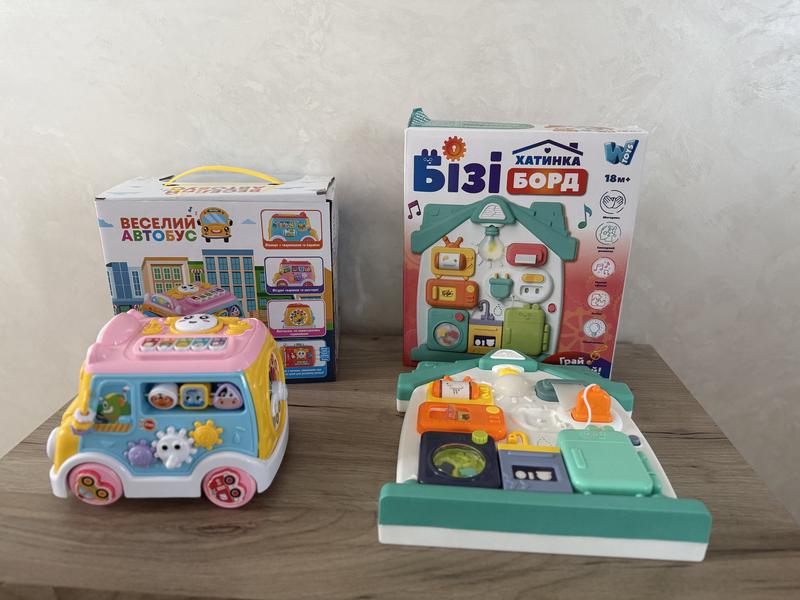 Продам музичні, розвиваючі іграшки для дітей у ідеальному стані: веселий автобус(400грн, ціна нового 600грн), бізіборд(450грн, ціна нового 700грн). Якщо брати дві іграшки, продам за 700грн