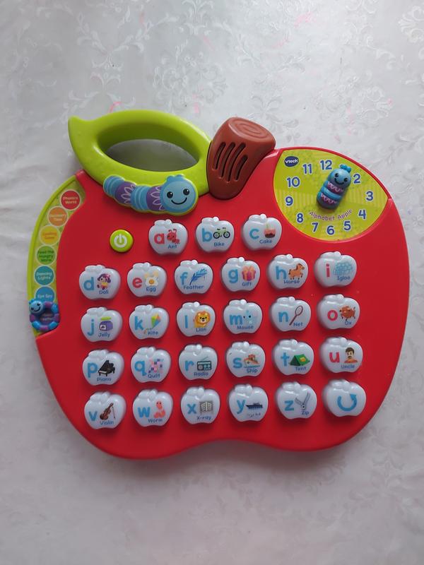 Функции: имеет 26 кнопок с буквами для изучения алфавита, звуков, названий букв и букв. Особенности: Включает часы с подвижными стрелками для обучения времени и интерактивного червячка-гида. Режимы: Предлагает 8 различных режимов обучения и игр с разными уровнями сложности.