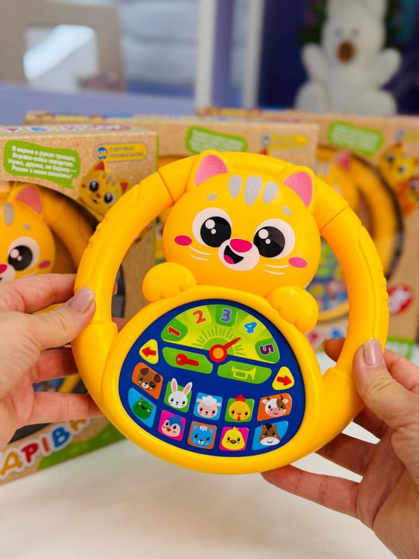 🚗🐱 Интерактивный руль “Мендильник” 🐱🚗 Артикул :2661 Яркий музыкальный руль в виде милого котика - отличная игрушка для маленьких водителей, которая сочетает игру и развитие 👶✨ Малыш сможет представить себя настоящим водителем, нажимать кнопки, слушать песенки, стишки и звуки авто. Игрушка помогает развивать слуховое восприятие, мелкую моторику и координацию движений. 🎵 Возможности игрушки: 🔹 5 песен-историй 🔹 10 веселых стишки 🔹 Звуки настоящего автомобиля 🔹 Яркие кнопки с животными 🔹 Удобная форма для маленьких ручек 🇺🇦 Озвучено на украинском языке Игрушка стимулирует воображение, знакомит с цифрами и звуками транспорта, развивает память и внимание.
