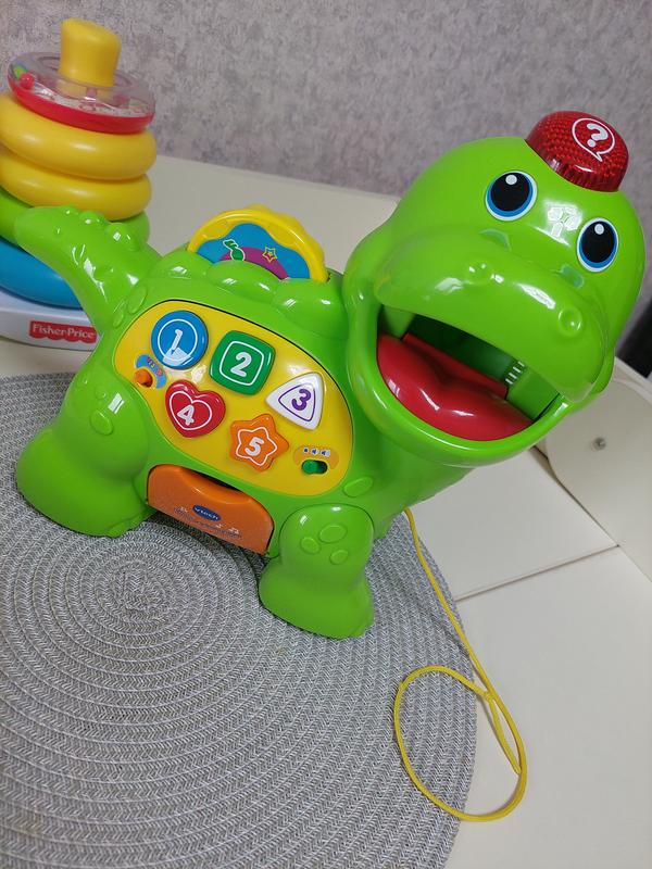 хорошего качества! долговечный пластик! неубиваемый)) все фишки в комплекте, все работает! озвучен на английском языке! большой. не малый. цена от 2000 грн Яркий веселый динозаврик так любит есть. Ребенку понравится засовывать разноцветные монетки с рисунками еды и слушать что говорит динозавр. Игрушка познакомит ребенка с цветами, названиями пищи, формами и счетом. А еще у динозаврик около 130 песен, мелодий, звуков и фраз. 5 кнопок различной геометрической формы служат для изучения форм и чисел. При нажатии на кнопку - динозаврик говорит название формы. Игрушка с регулятором громкости и автоматическим отключением. Для работы требуются 2 батарейки АА (включая демонстрации), для игры – нужны новые батарейки. Кормите Дино восемью разноцветными монетками и слушайте его забавные ответы. С помощью кнопок, чтобы услышать забавные звуки и фразы, а также изучить формы и цифры. Включите вращающийся диск на спине Дино, чтобы услышать множество веселых песенок. Преимущества: Эмоциональное развитие. Звездное восприятие. Мелкую моторику. Тактильные ощущения. Цветовое восприятие сб: 10:00-14:00 payment systempayment systempayment system Каталог Поиск ндивидуальная запись Кошик