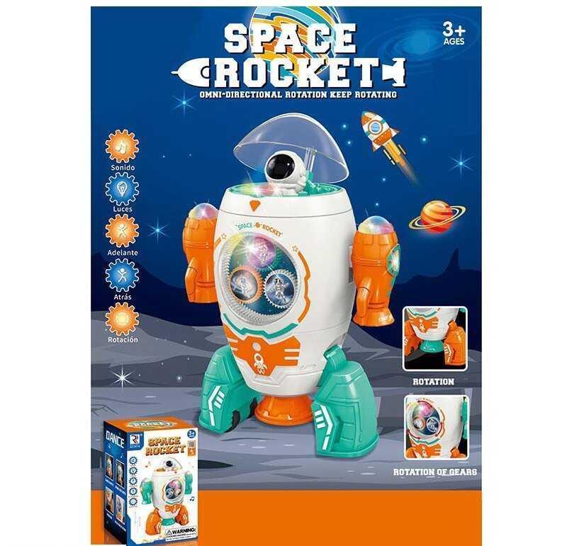 Эта яркая игрушка превратит обычную игру в увлекательное космическое путешествие! Ребенок может представлять себя настоящим астронавтом, отправляющимся в невероятное путешествие в бескрайние просторы космоса. Красочная подсветка и динамичная музыка надолго увлекут внимание и подарят кучу приятных впечатлений. Особенности: - игрушка исполнена в виде космической ракеты; - двигается и вращается; - имеет динамическую музыку и яркую подсветку; - разноцветные подвижные шестерни; - игрушка работает от 3 батареек типа "АА" (не прилагаются). Внимание. Производитель оставляет за собой право изменять комплектацию, цветовую гамму и характеристики товара без предварительного уведомления. После оформления заказа мы свяжемся с Вами в течение 2-х часов и если у Вас возникнут вопросы, мы с радостью на них ответим.