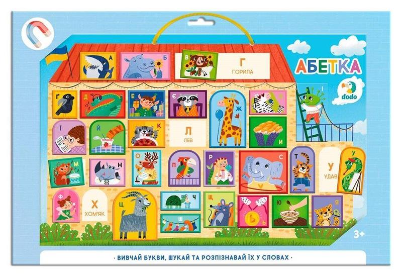 Магнитная доска Dodo «Азбука» — яркая и обучающая развивающая доска для детей, которая превращает изучение букв в увлекательную игру! Эта доска — идеальный способ познакомить малыша с украинским алфавитом, развивать логику, внимание и мелкую моторику, а также способствовать творческому мышлению. В комплекте — цветные магнитные изображения с буквами, которые легко крепятся и переставляются, что делает игру еще более интересной и динамичной. Доска отлично подходит как для домашнего использования, так и для детских садов или учебных кружков. Безопасные материалы, красочный дизайн и возможность бесконечных вариаций обучающих игр делают эту магнитную доску отличным подарком. Развивайте навыки чтения весело и эффективно вместе с Dodo «Азбука»! Особенности: - 1 магнитная доска на шнурке; - 33 магнита; - алфавит; - размеры доски: 49х32,5 см; – для детей от 3-х лет. Характеристики и комплектация товара могут изменяться изготовителем без уведомления.
