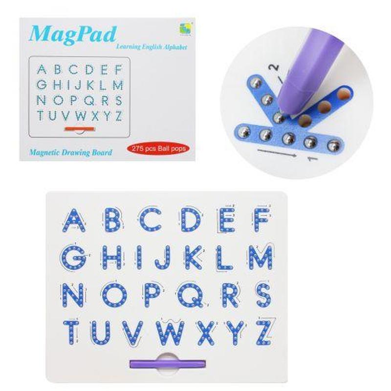 Обучающая дощечка "Алфавит". Представляет собой пластиковую дощечку с изображением буков английского алфавита. На каждой буковке луночки, внутри которых размещены металлические шарики. В комплекте имеется ручка-стилус с магнитом. Если провести стилусом по буковкам, шарики из луночек будут подниматься и зафиксируются на поверхности. Размер дощечки - 31х25 см. Выполнено из качественного пластика. Язык: Английский Упаковка: Коробка Цвет: Разноцветный Вес в упаковке: 510 г Габариты в упаковке: 36.5 x 31.5 x 2 см Cтрана производитель: Китай Материал: Пластик Комплектация: Дощечка, стилус
