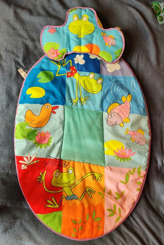 Развивающий коврик с подушкой для обучения немовленка держать головку) Подушечка помогает в тренировке держать головку. Яркие цвета и разная текстура развивает зрение и тактильные ощущения. Состояние идеальное, практически не пользовались.