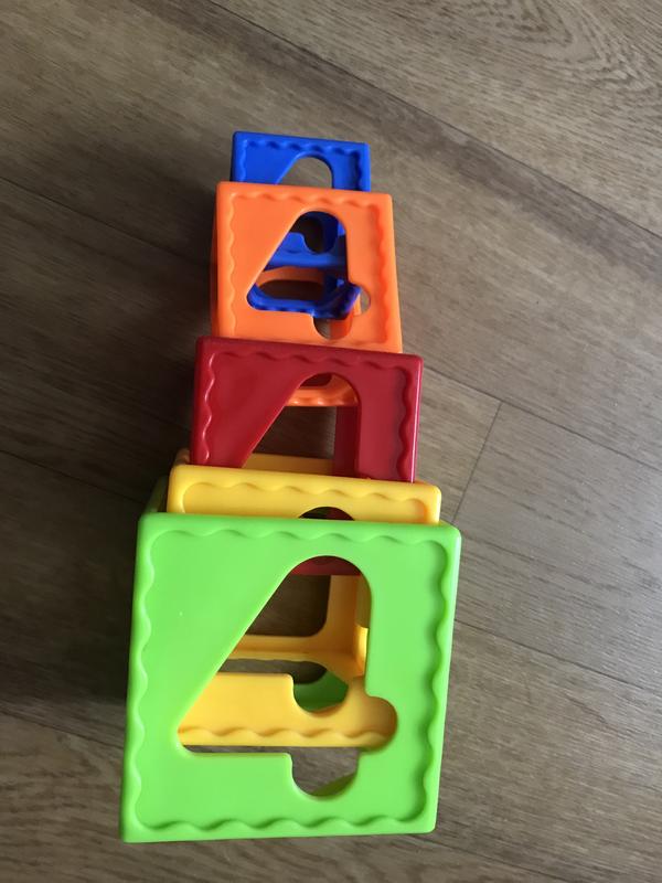 Очень классные кубики ,от 6 месяцев и до лет 4х можно! Складывать башню ;в один в один ,чтобы совпали фигурки ,учить цвета ! Качество очень хорошое !