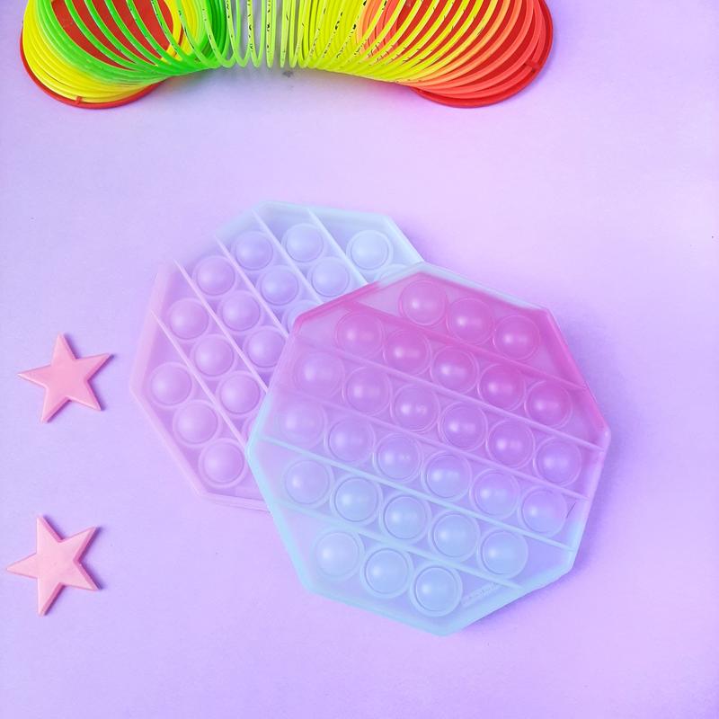 Крутейший поп ит хамелеон, который меняет свой цвет на солнце! в тени он белый а на солнце фиолетовый! на фото Нижний светлее, потому что пыталась сфотографировать в одном кадре два его состояния. Но не смогла, потому что он начинает меняться как только увидит солнышко! очень интересная игрушка!