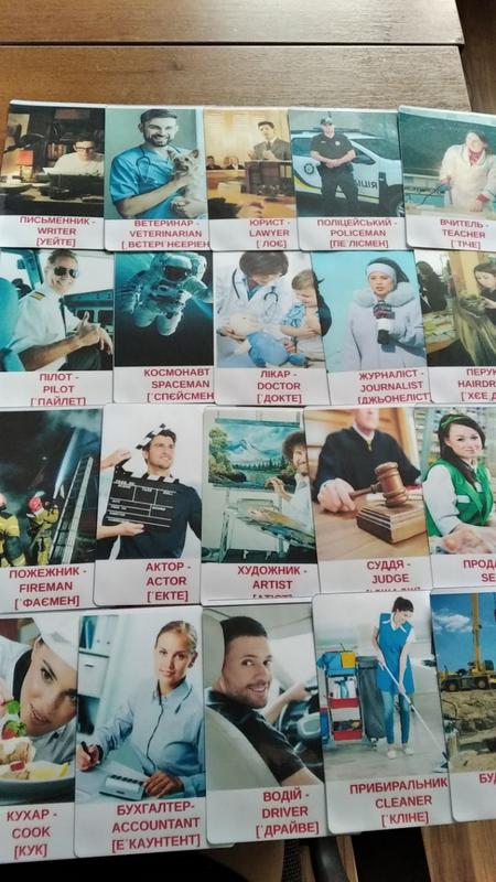Двомовні картки Домана (містять зображення та підпис предмета англійською, українською мовами та транскрипцію українською мовою). В набір входять 20 ламінованих карток із заокругленими краями. Формат картки: А6 Мова: англійська; українська.