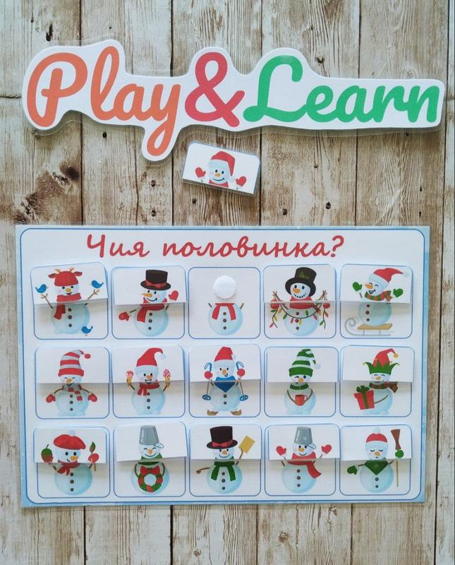Гра на липучках "Сніговики". Гра складається з 15 деталей на липучках. Кожна деталь містить захисне поля ламінації.