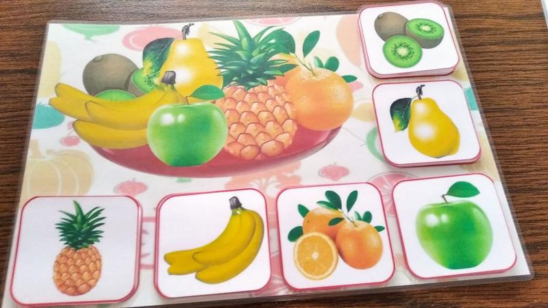 Фрукти (по контуру) 6 деталей на липучках. Контурне лото (для кожної деталі зображень контур)