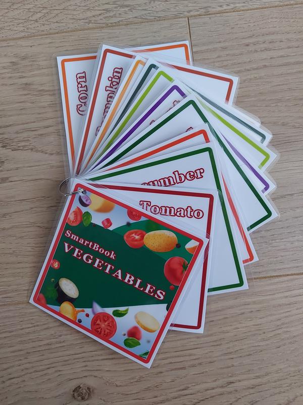 ламінована книга SmartBook "Овочі", Vegetables", 9×9 см 11 назв овочів англійською мовою можливе виконання і іншими мовами