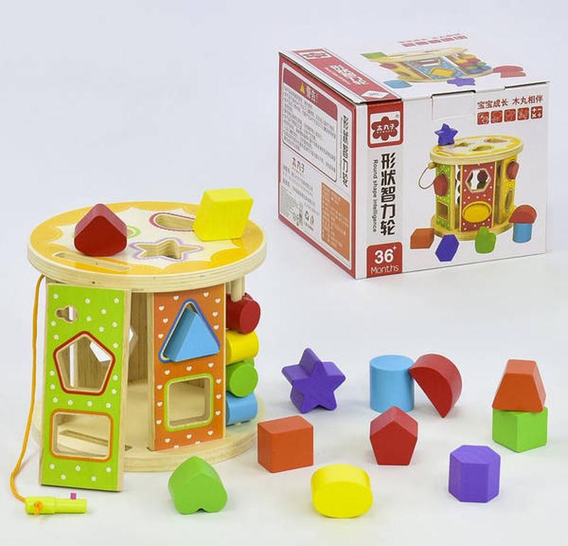Логическая игра из дерева Развивающий Сортер - это объемный красочный многоугольник с двумя круглыми гранями и множеством ячеек разных форм и размеров. Каждая грань игры оформлена разными цветами с интересными узорами и отверстиями. К каждой ячейке в наборе имеется геометрическая фигурка. Задача ребенка – подбирать фигурки и проталкивать их в соответствующие отверстия. Для того, чтобы этот процесс был легче и еще более увлекательнее в набор входят два молоточка. Чтобы достать все детали из многоугольника необходимо открыть одну из его граней при помощи специального ключика на верёвочке. Игра станет замечательным поводом не скучать, развивать полезные навыки и расширять кругозор.