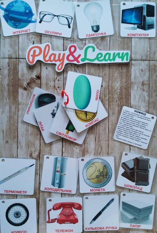 Мова: українська. У будь-яку тему входять: 18 карток. Картка містить зображення та підпис з одного боку; факти та завдання з іншого боку. Картки містять захисті поля ламінації. Набір скріплений металевим кільцем (легко знімається та одягається).
