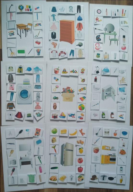 144 деталі на липучках, 9 ігрових полів (шкільна парта, ванна, кухня, косметичка, аптечка, чистий одяг, брудний одяг, іграшки та холодильник) Формат гри: А4.