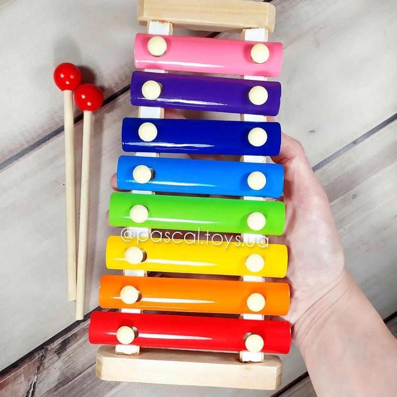 🕯️ Возраст: 2+ 📏 Размеры: - ксилофона: 24*8,5-12,5*2,5 см; - палочки: 16,5*2 см; - коробки: 24,5*13,2*3,5 см. 🧰 Материал: дерево, металл.