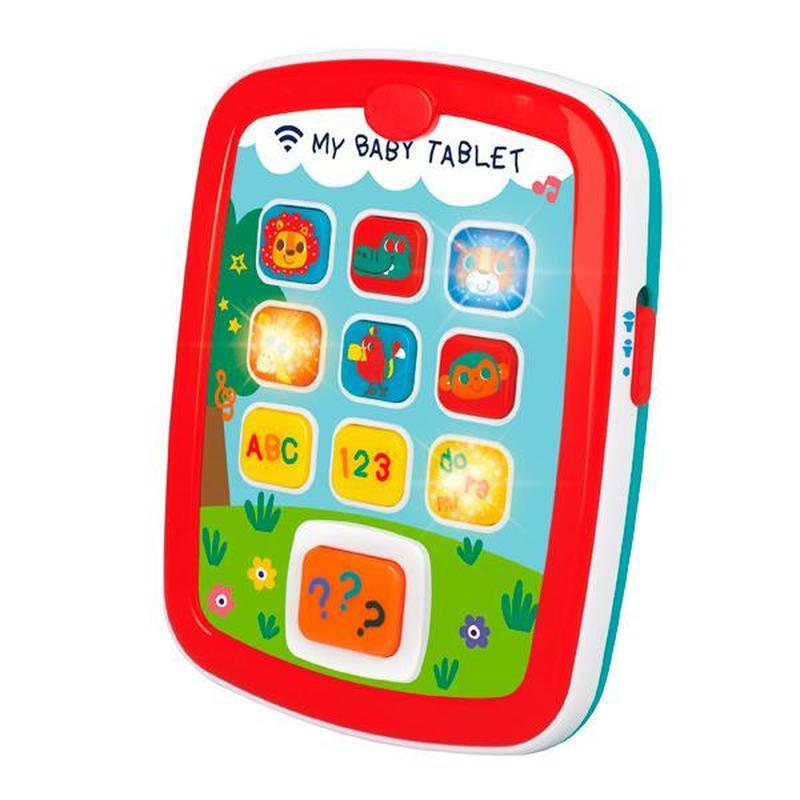 З іграшкою планшет музичний малюк дізнається перші букви алфавіту, звуки кількох тварин, почує забавні мелодії. Слова записані на англійській, лампочки блимають. За допомогою кнопки зі знаками питання можна грати в «вгадай правильну відповідь». Іграшка відповідає стандартам якості та безпеки: EN71 (європейський), ASTM (американський).