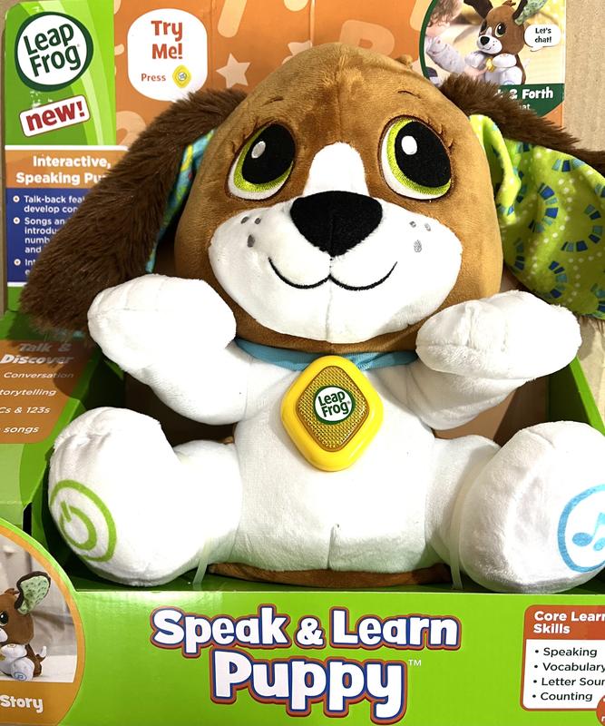 Дайте волю своему щенячному покачиванию к плюшевому щенку Speak & Learn Puppy! Наблюдайте, как ваш маленький друг оживает с плющими ушами, двигается головой и реакциями в реальном времени. Когда малыши учатся говорить, эта интерактивная собака повторяет то, что они говорят, и задает вопросы, чтобы поддерживать разговор. Бейли говорит то, что говорит ваш ребенок, в веселой и интерактивной форме в режиме «Бабл». В режиме разговора щенок разговаривает с детьми и создает истории с их ответов.