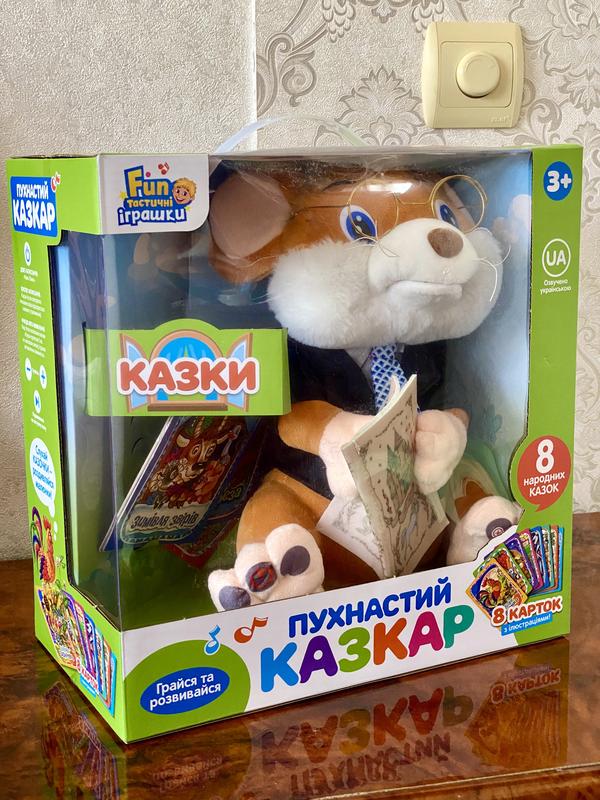 Все малыши любят засыпать под тихий мами голос, рассказывающий интересную сказку. Как правило, после такого ритуала и сны красочные и очаровательные. А теперь представьте какой восторг вызовет у малыша игрушка, которая сама рассказывает любимые сказки, да еще и плюшевый мышонок! Мягкий плюшевый мышонок, при нажатии на лапку, начинает с интонацией и движениями рассказывать одну из 8 сказок. Лучший подарок для малышей и мам, который убаюкает непоседу, заинтересует его внимание и согреет в своих пушистых объятиях, а сказки, расказанные им, подарят волшебные сны. В комплекте 8 карточек с иллюстрациями. Размер упаковки 31-30-16 см
