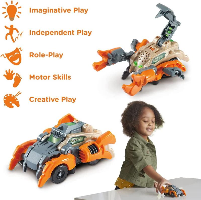 АВТОМАТИЧЕСКИЙ ПЕРЕКЛЮЧАТЕЛЬ: Сделайте переключатель Striker из автомобиля на скорпиона одним нажатием, а затем переключитесь назад в автомобиль за декилики простых шагов ОБУЧАШАЯ ИГРУШКА: Эта фантастическая обувная игрушка ответит захватывающими звуками скорпиона и автомобиля, удивительными фразами и интересными фактами, чтобы ваш малыш развлекается во время учебы. ВЕСЕЛАЯ ЭЛЕКТРОННАЯ ИГРУШКА ДЛЯ ДЕТЕЙ: С прохладной блестящей оранжевым, черным и коричневым покрытием, чтобы сделать Striker действительно выделяемым, эта фигура скорпиона проявляется идеальным подарком для детей.