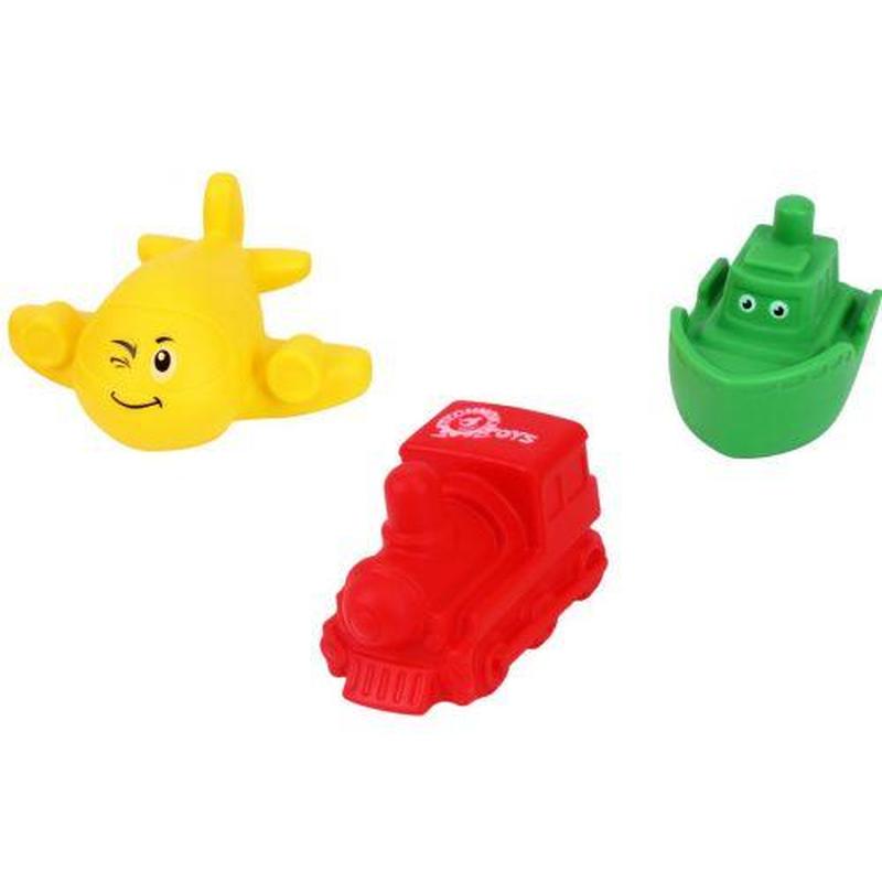Набор резиновых игрушек в виде разных видов транспорта: самолет, кораблик и поезд. Игрушки прекрасно подойдут для игры в ванне или на пляже. Выполнены из плотной резины, игрушки прочные и долговечные. Размер одной игрушки: 8.5 х 6 х 4.5 см. Изготовлено в Украине. Бренд: Технок Упаковка: Сетка Цвет: Разноцвет Вес в упаковке: 105 г Габариты в упаковке: 7 x 14 x 14 см Габариты без упаковки: 4.5 x 8.5 x 6 см Cтрана производитель: Украина Материал: Резина Комплектация: 3 игрушки