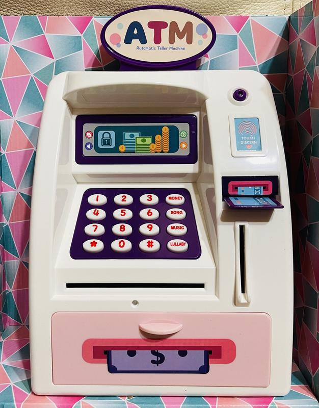 Копилка/сейф Банкомат, терминал, кодовый замок(можно менять), купюроприемник, деньги, стихи, песенки, звук, светится, на батарейках, в коробке 28*24*11 см (англ.язык)