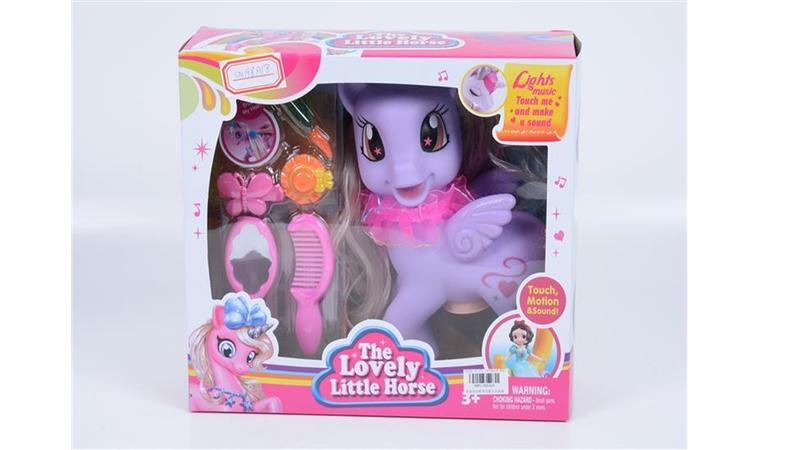 Пони My lovely little horse музыкальное пони интерактивный пони с музыкой игрушечный пони с аксессуарами Ваша малышка обожает истории о волшебных лошадках пони? Тогда такая милая красочная фигурка точно ей понравится. У лошадки очень милый вид, длинная красивая грива, которую девочка сможет расчесать и уложить. Игрушка поможет ребенку развивать воображение, креативность и фантазию. Замечательное музыкальное пони станет любимой игрушкой вашего малыша. В набор входят : - пони, - шпилька, - расческа, - зеркало, Рекомендуемый возраст использования от 3 лет.