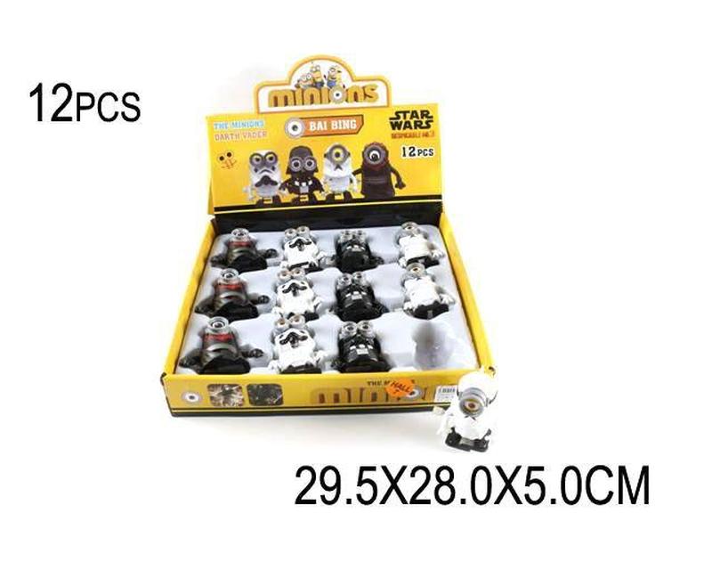 Набор заводных игрушек "Миньоны" в стиле "Звездные войны", ходят. 12 игрушек (4 вида) в комплекте. Упаковка: Коробка Цвет: Разноцвет Вес в упаковке: 525 г Габариты в упаковке: 30 x 5.5 x 28 см Габариты без упаковки: 30 x 6 x 28 см Cтрана производитель: Китай Материал: Пластик Комплектация: 12 игрушек