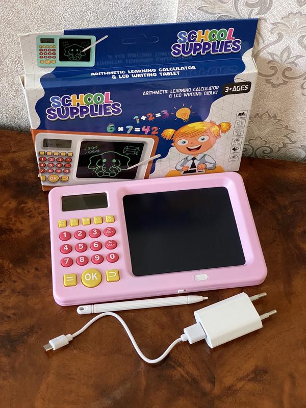 Детский LCD планшет – это отличное устройство как для рисования, так и для использования в качестве органайзера для заметок. В планшете встроен калькулятор с заданиями разной сложности. USB зарядка в комплекте. Озвучен на английском языке. Для детей дошкольного и младшего школьного возраста может выступать своеобразным "чернеткой" на решение примеров и задач. Для малышей - это своеобразная доска для творчества, на которой можно рисовать бесконечное количество раз. Это новое поколение электронного устройства может заменить 100 000 листов бумаги. Панель оснащена кнопкой быстрого стирания изображения. Компактный размер и небольшой вес делают его практичным и транспортабельным. Кроме того, простой функционал позволяет использовать его без применения специальных навыков даже малышами. Размер планшета 19-12 см Размер упаковки 19,5-16,5-2 см