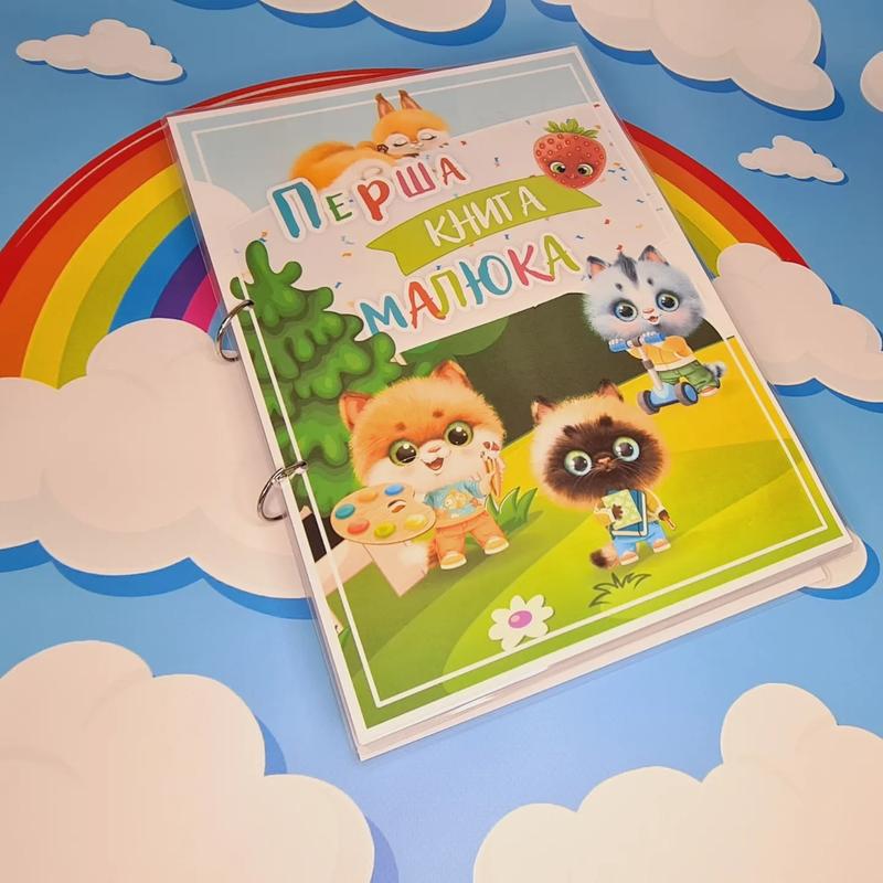 Первая книга малыша на липучках В альбом входять : -овощи, -фрукти та ягоди , - животные, -кольори, профессии ( профессии можно заменить или добавить страницы транспорт). Всего альбом содержит 10 рабочих страниц, 5 разворотов и 99 деталей на липучках. Такой альбом станет отличным подарком. Формат А4.