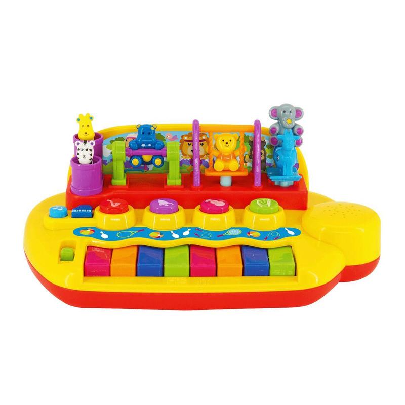 Пианино с цветными клавишами передает звучание 5 музыкальных инструментов: фортепиано, саксофон, скрипка, аккордеон, колокольчики. При нажатии на кнопку с ноткой пианино рассказывает стишок, а также поет три веселых песенки, под которые ребенок сможет совершить настоящую зарядку вместе с Обезьяной, Львом и Аистом. При нажатии на кнопку с изображением пианино звучит веселый стишок о животных и 5 разных мелодиях. На игровой панели размещены фигурки животных, которые весело двигаются, когда малыш играет на пианино или слушает песенки и мелодии. На украинском языке. Работает от 2-х батареек АА (есть в комплекте). Бренд: KIDDI SMART Язык: Украинский Упаковка: Коробка Цвет: Разноцвет Тип эл-тов питания: Батарейки (АА) Кол-во эл-тов питания: 2 Эл-ты питания в комплекте: Есть Вес в упаковке: 810 г Габариты в упаковке: 20 x 30.5 x 14 см Габариты без упаковки: 13 x 27 x 17 см Cтрана производитель: Китай Материал: Пластик Комплектация: Пианино