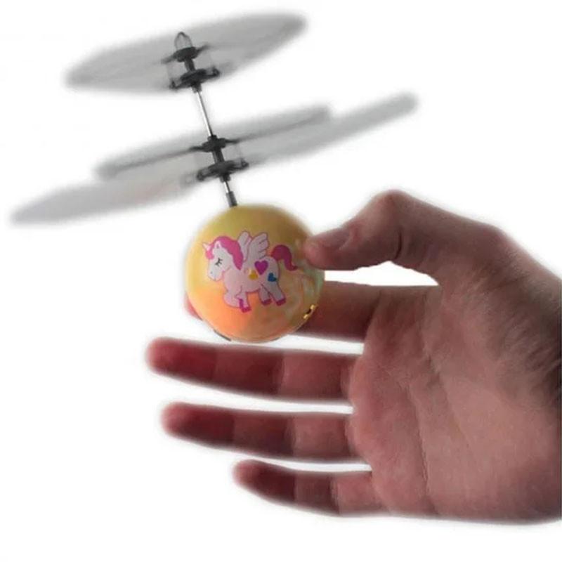 Летающий шарик имеет небольшие лопасти как у вертолета, при этом они легко гнутся и довольно прочные. Внутри шара разноцветные диоды, при включении его через маленькую кнопочку они загораются, начинает очень быстро, крутится верхушка. Также внутри датчик чувствительности, героскоп, отпускаешь шарик на ладошку, и он взлетает. Заряжается он легко и быстро, через шнур, который идет в комплекте, а летает после полной зарядки целых 10 минут. Игрушка летающий шар развивает быстроту реакции, ловкость и внимание, а также координацию движений вашего ребенка. Характеристики: Возрастная группа: от 7 лет Материал: прочный пластик Время подзарядки: 30 минут Время работы: 10 минут Тип питания: аккумулятор Длина шнурка USB: 60 см Комплектация: Шар Шнур USB Коробка