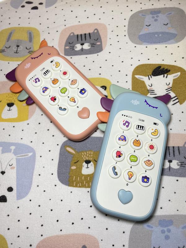 Детский телефон📲 Особенности:🔵ушки и рожки изготовлены из эластичного материала и выполняют роль прорезывателя; 🔵игрушка работает от 2-х батареек типа "ААА" (не прилагаются); 🔵Подсвечивается приятными огоньками; 🔵приятный на ощупь и имеет округленную форму; 🔵Изготовлен из качественного первичного пластика; 🔵В комплекте представлен удобный шнурок для держания в руке; 🔵нажатие на "сердце" переключает 2 режима работы телефона: цифры и звуковые эффекты; 🔵на передней панели расположено 13 функциональных кнопок: 1 – песни; 2 – инструментальные мелодии; 3 – колыбельная мелодия; 4 – названия автомобилей; 5 – названия животных; 6 – изучение цветов; 7 – воспроизведение звонка близких; 8 – звук уведомления; 9 – казки; 10 – рингтон; 11 – веселые мелодии; 12 – звук фотосъемки; 13 – переключения режимов. Телефончик озвученный на английском языке🧸