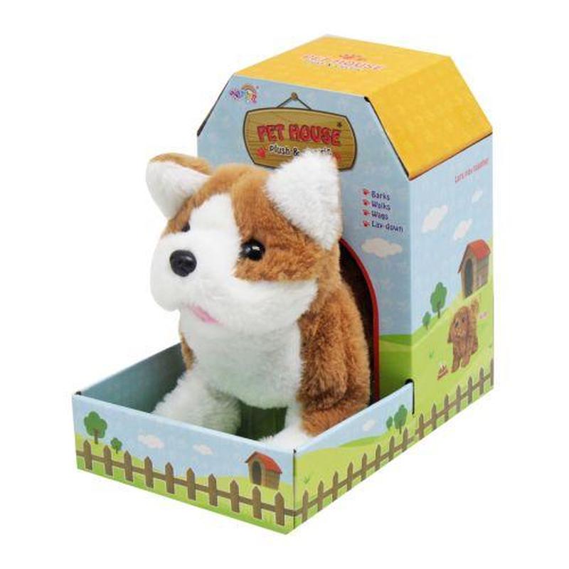 Інтерактивна іграшка собачка. Іграшка працює від батарейок. 2 режими: 1 натискання — песик гавкає та ходить (3 секунди); 2 режим — песик гавкає, ходить і махає хвостиком під музику (поки його не вимкне). М'яка та дуже приємна на дотик. Паковання виготовлене у формі будки. Розмір іграшки 16х15х10 см. Паковання: Коробка Колір: Коричневий Тип ел-тів живлення: Батарейки (АА) Кількість ел-тів живлення: 2 Ел-ти живлення в комплекті: Немає Вага в упаковці: 230 г Габарити в упаковці: 13 x 20 x 19 см Габарити без паковання: 10 x 16 x 15 см Страна виробник: Китай Матеріал: Комбінований Комплектація: Інтерактивна іграшка 193496 139836 T826-1/2 MiC