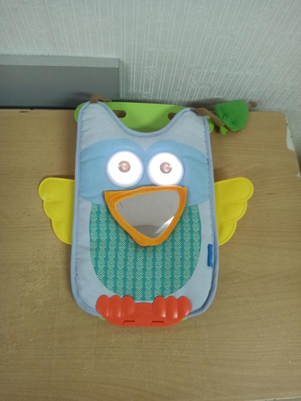 Если Вам впереди поездка в машине с малышом, возьмите с собой развивающий центр для автомобиля - МУЗЫЧНАЯ СОВА, и тогда он в дороге не будет вредить. МУЗЫЧНАЯ СОВА - очень милая и красивая игрушка для самых маленьких, Сделанная из качественных материалов и имеет различные интересные функции. Крепится она к заднему сидению авто. Яркие цвета и разнообразные элементы сразу же привлекут внимание ребенка. На клювике у совы находится безопасное зеркало. Есть на ней также игрушки в виде клубнички и листочка. Если их пощупать, то у совы загораются глаза, а также начинает играть музыка. Здесь предусмотрены две веселые и две спокойные мелодии, каждая из которых может играть в течение десяти минут. Угол наклона и высоту расположения игровой панели регулируется.
