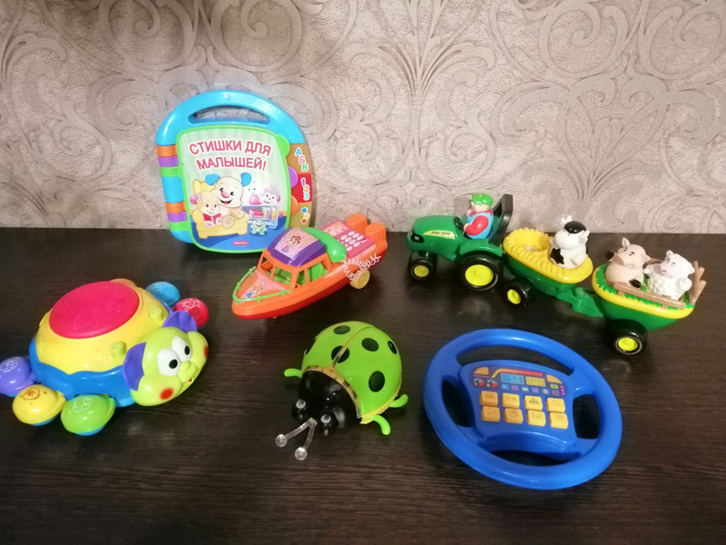 Виробник: Інший виробник Стать: Унісекс Вік: Від 1-3 років Тип іграшки: Музичні іграшки Матеріал: Пластикові Продам музичні іграшки, развивашки. Свої, після 1 дитини. Фото 2, 3: Музичний трактор зі звірятами. Фірмовий оригінальний John Deere. Немає одної тваринки пасажира (у ціні враховано). Ціна 450 грн. Фото 4,5: Музична книжечка Fisher-Price "Віршики для малят". Озвучка - російська мова. Ціна 300 грн. Фото 6: Інерційний музичний кораблик. Всі кнопочки робочі. Якщо потягнути за мотузочку - їде. Ціна 65 грн. Фото 7,8: Музичне кермо. Всі кнопки робочі. Ціна 45 грн. При необхідності надам додаткові фото або відео. Дивіться інші мої оголошення. Відправляю Укрпоштою, Новою поштою, доставка ізі. Є спільноти в Viber з товарами для дітей і мам і з безфосфатними засобами по догляду за будинком. Пишіть номер телефону, я додам.