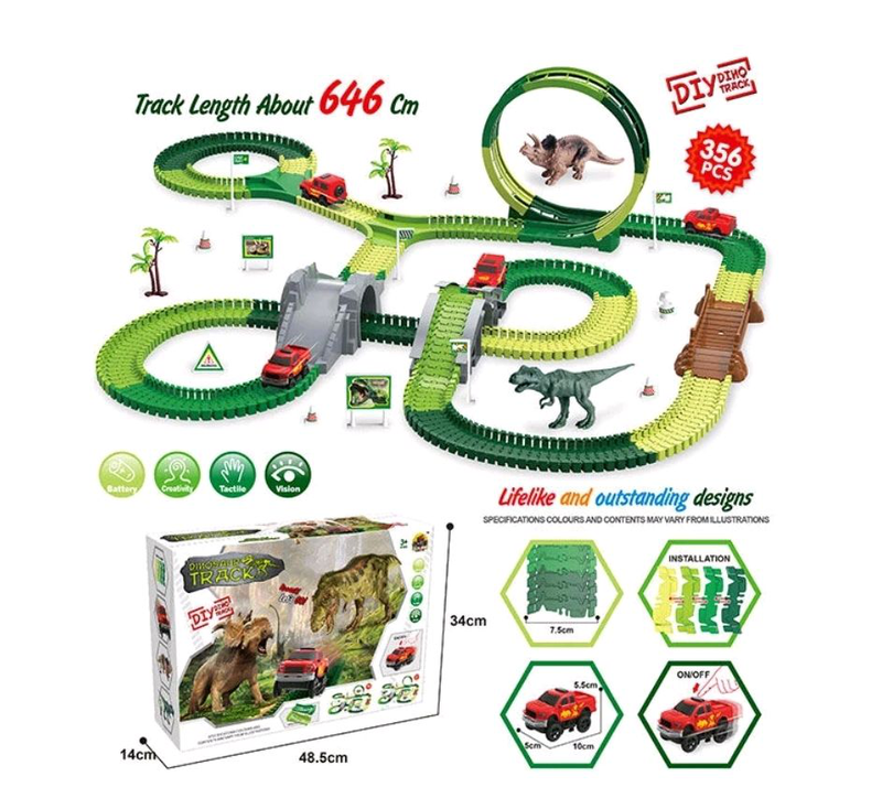Якщо Ви хочете облаштувати по справжньому крутий автотрек, зверніть увагу на поклик хижих джунглів! Цей трек стане справжнім випробуванням для високошвидкісної гонки на виживання. Весь автотрек виконаний в бездоганному стилі, траса довжиною в 646 см складається з 356 деталей, які не тільки прокладають дорогу, але і прикрашають її по всьому периметру. Особливості автотреки: - мертва петля; - міст; - гнучка траса; У комплект входять: - деталі для складання треку, - машинка; - 2 динозавра; - дорожні знаки;